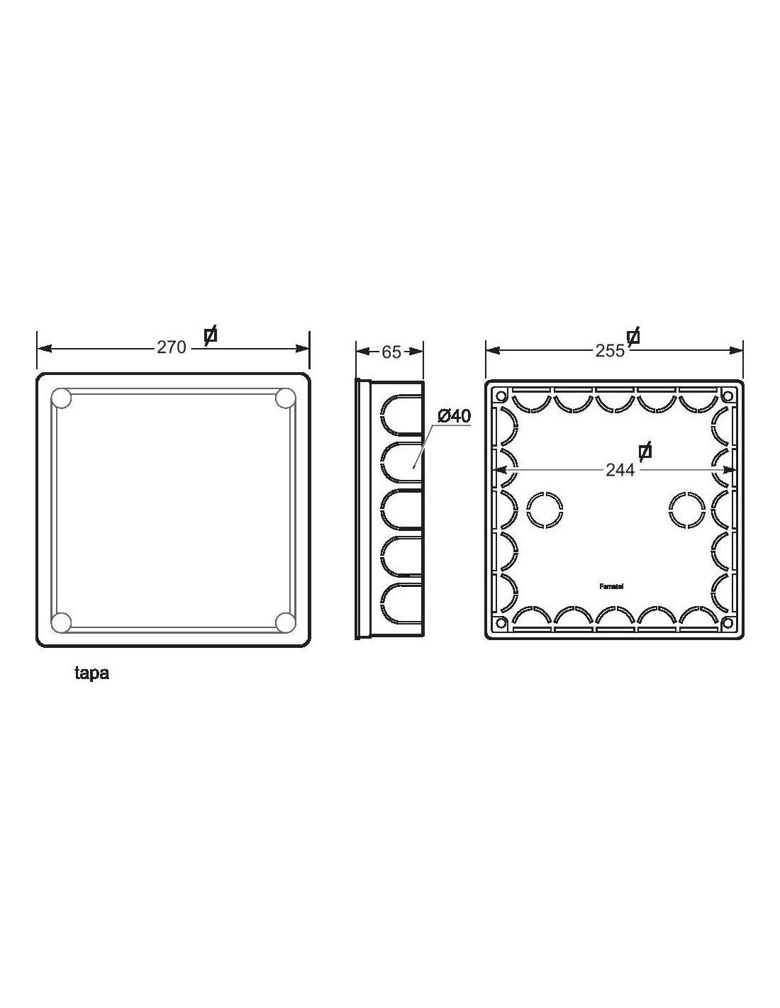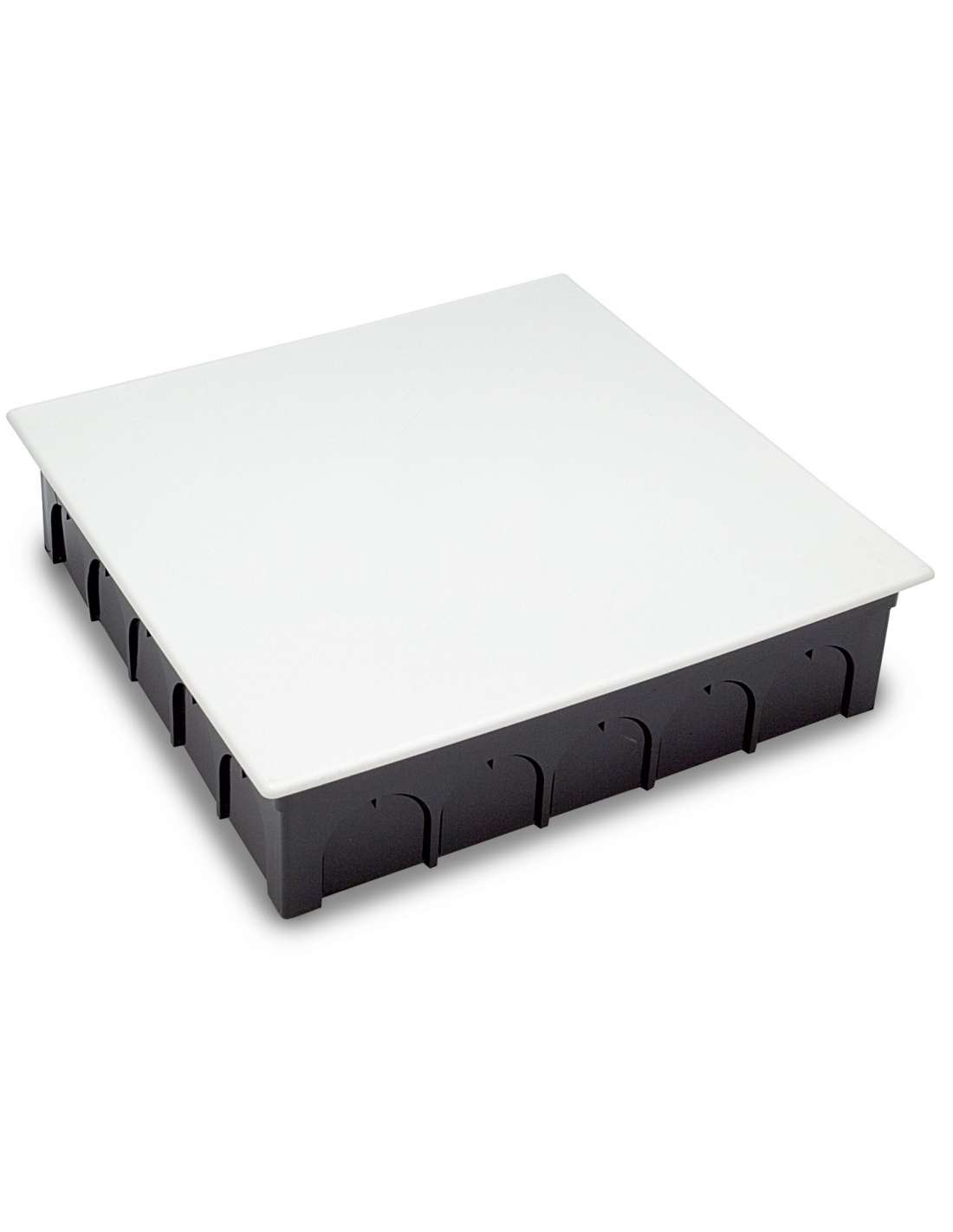 Caja de empalmes para empotrar 250x250x65 mm, tapa garra metálicas.